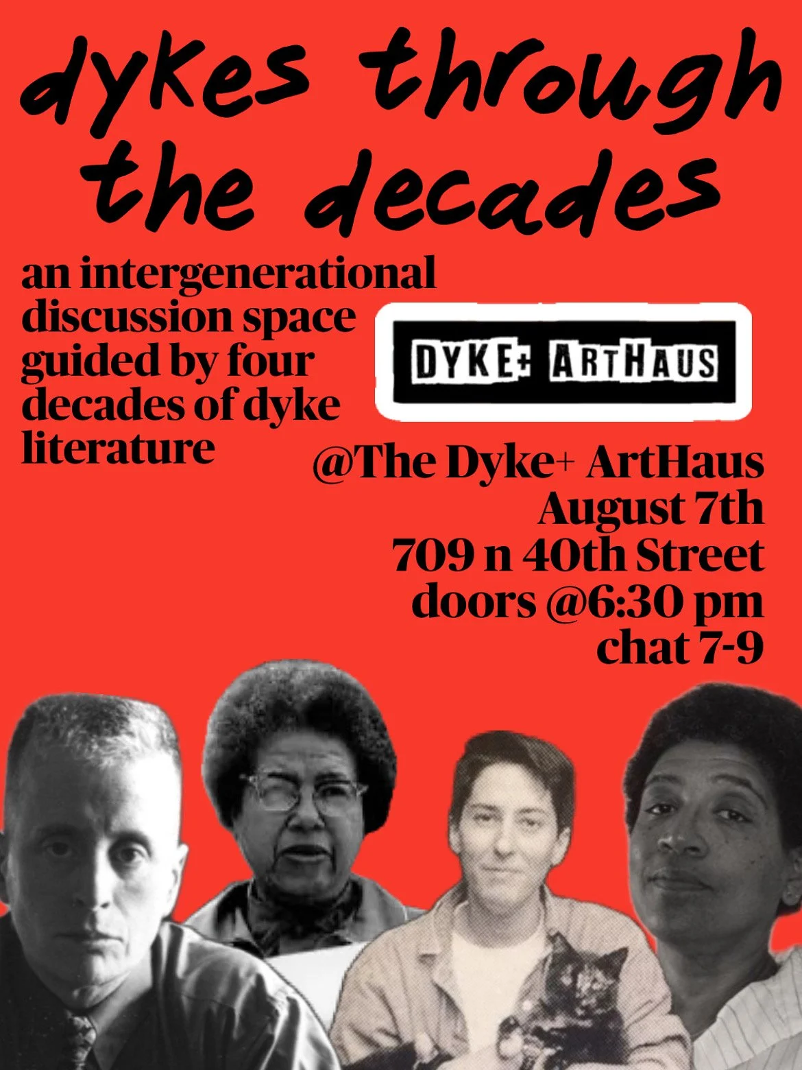 Join us on Thursday, August 7th for an open discussion on lesbian and dyke writing from Stone Butch Blues to Dykette. We’ll chat about how lesbian literature has changed and what it says about our shifting culture.